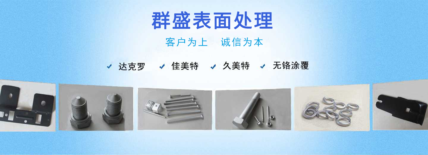 靖江市群盛表面處理有限公司,位于江陰長江大橋之畔靖江市城北園區(qū)山南路21號,成立于2007年3月。 公司引進了上海達克羅涂覆工業(yè)有限公司的全自動生產(chǎn)設備和溶液。技術人員曾多次在上海公司培訓,并得到該公司的技術支持。公司還配備了計量、理化檢測儀器和設備,以確保產(chǎn)品持續(xù)的品質。公司的涂覆加工中心是質量穩(wěn)定、設備優(yōu)良的達克羅、佳美特和無鉻涂覆加工基地。 公司現(xiàn)有六條自動流水生產(chǎn)線 ,月加工能力可達1000噸以上。憑借良好的生產(chǎn)設備和優(yōu)良的原料,賦予現(xiàn)場...